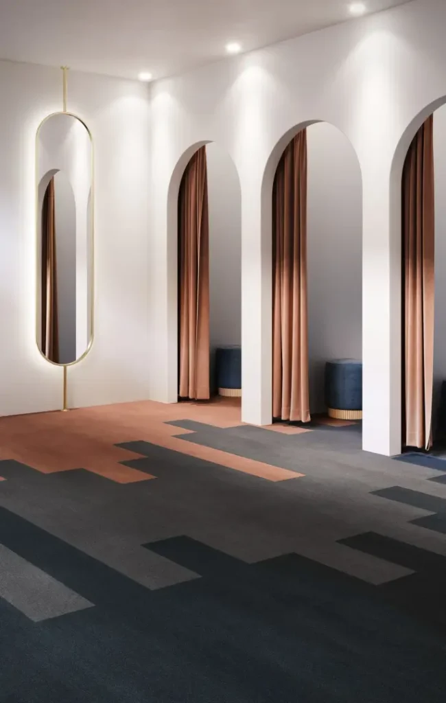A modulyss moduláris szőnyeglap-rendszere a funkcionalitás és esztétika összehangolt megközelítését követi, amely tervezett és intenzív használatú terekben is hatékonyan érvényesül. A márka kollekciói nemcsak időtálló burkolatokat kínálnak, hanem lehetőséget adnak egyedi szín- és mintakombinációk megalkotására, így a burkolat aktív vizuális komponensévé válik a térnek. Külön figyelmet szentel a fenntarthatóságnak: újrahasznosított nylonhulladékból készült fonalak, moduláris forma és hosszú-távú installációs logika jellemzik a kínálatot. A modulyss termékek ideálisak irodák, oktatási intézmények, kereskedelmi terek és közösségi zónák számára, ahol a padlóburkolat egyszerre szolgál technikai alap- és vizuális referenciapontként.
