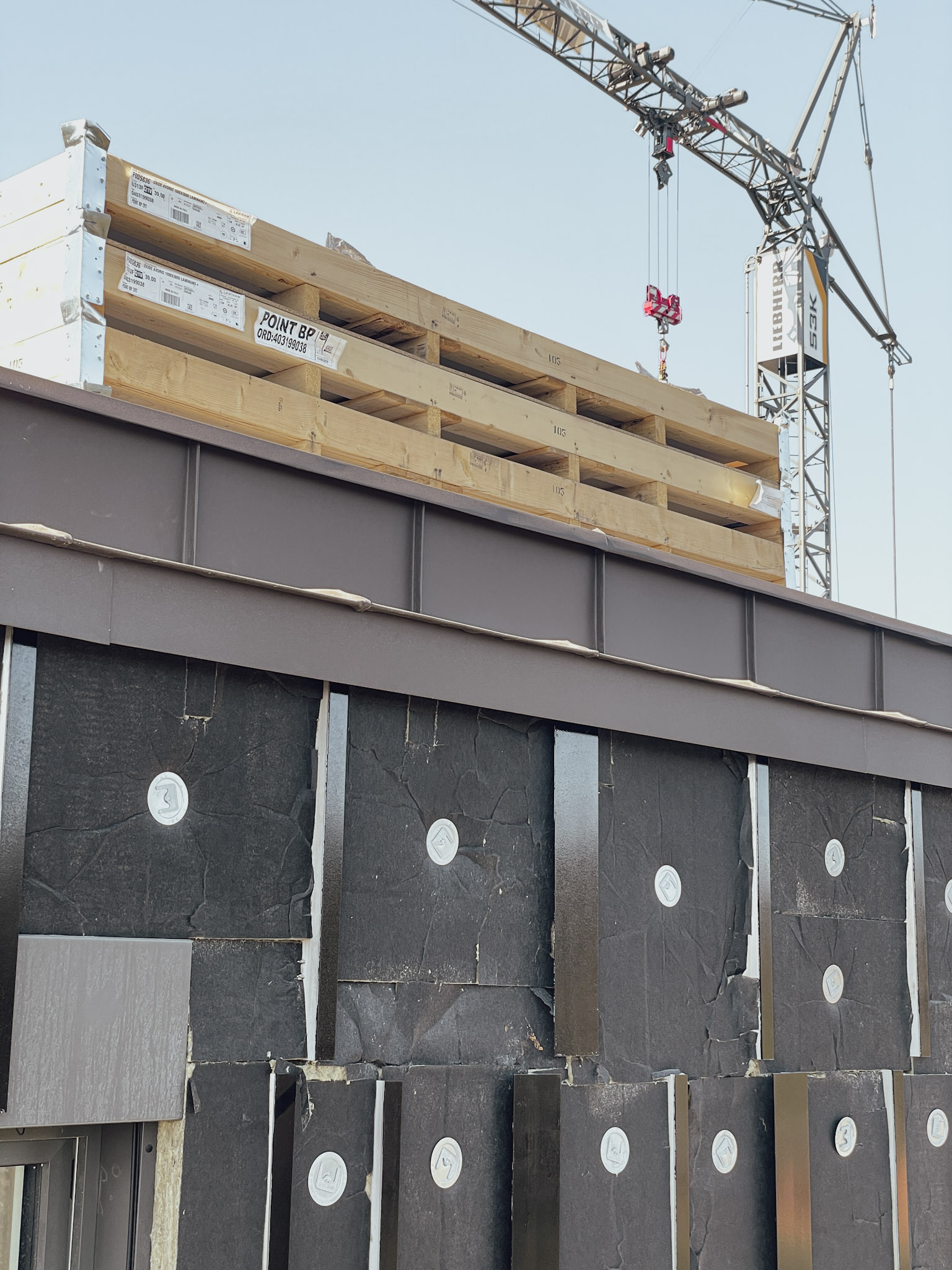 A Csatárka utcai társasház homlokzata nagyformátumú kerámia lapokkal kialakított, tiszta és következetes átszellőzetett homlokzatrendszer. A kiosztás szigorú, a fugák rajza tiszta, ettől a felület egységesnek hat, még közelről nézve is.